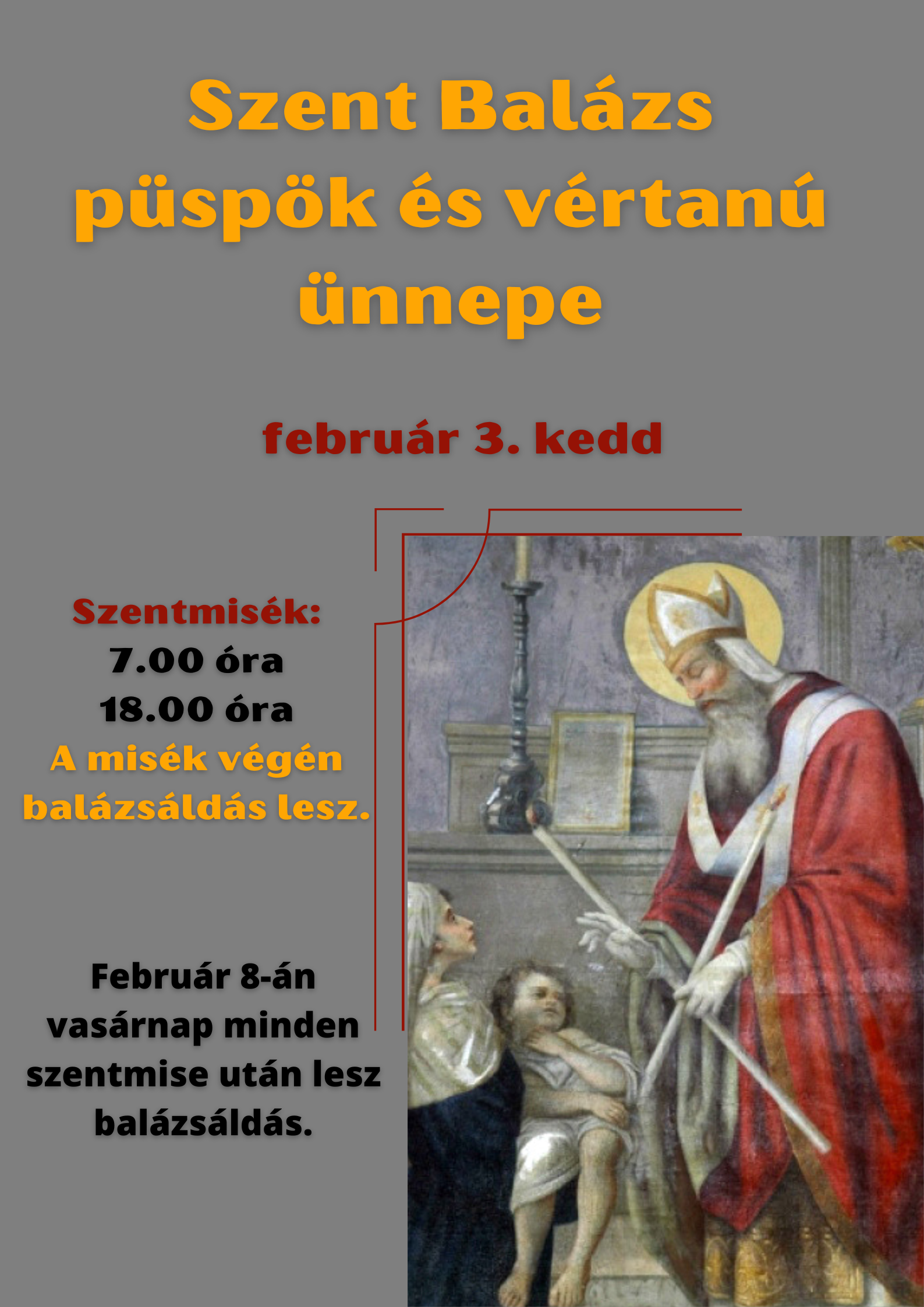 Aki nem tud eljönni kedden, vasárnap is részesülhet a balázsáldásban. Szeretettel várunk benneteket!