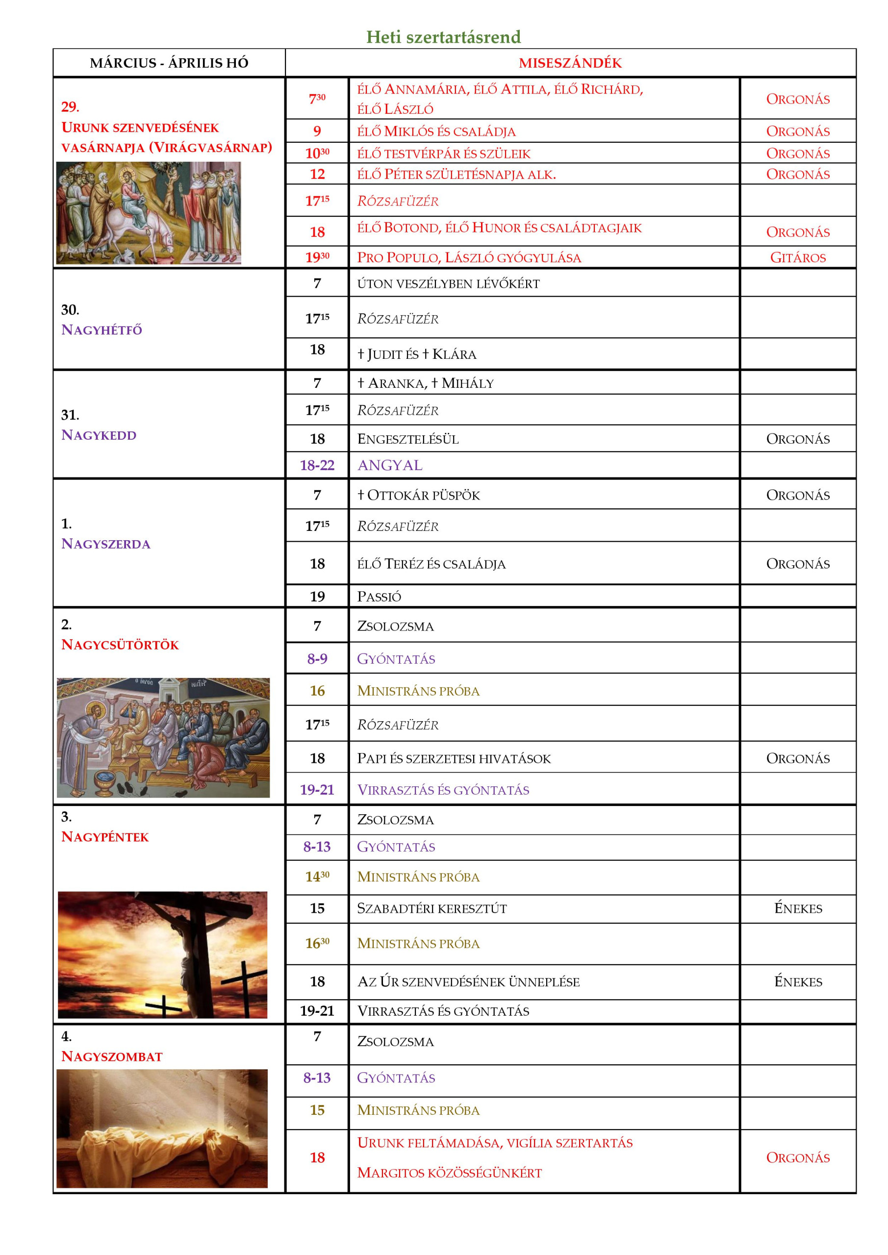 Szertartásrend - 2026.03.29.